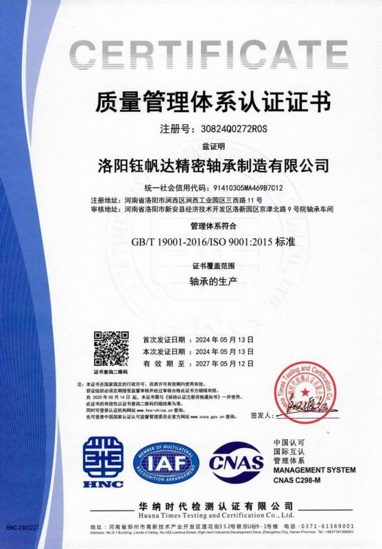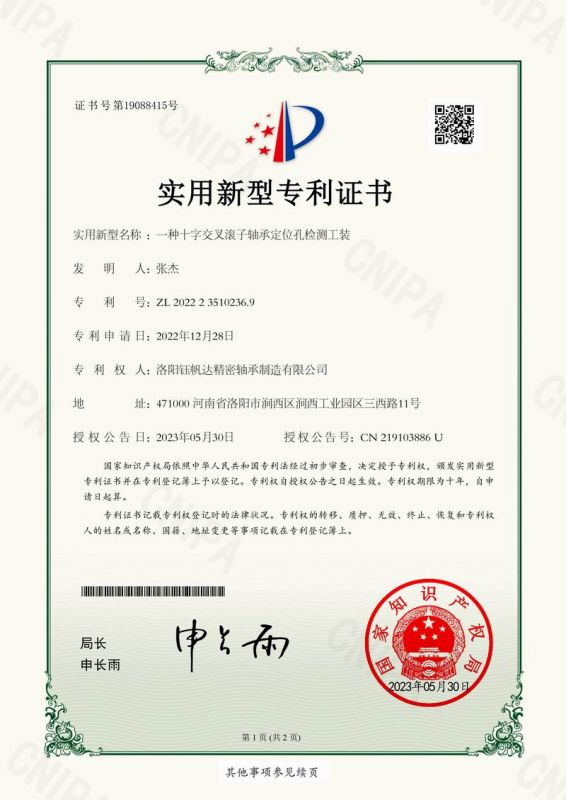 一種交叉滾子軸承證書